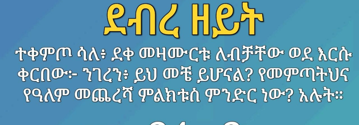 ትርጉም በኢትዮጵያ ኦርቶዶክስ ተዋሕዶ ቤተክርስቲያን የዐቢይ ጾም አምስተኛ ሳምንት ደብረ ዘይት ይባላል። ስያሜውም የተገኘው ከቅዱስ ያሬድ ነው። ደብረ ዘይት ማለት የወይራ ዛፍ ያለበት ተራራ ማለት እንደሆነና ከኢየሩሳሌም በስተምሥራቅ አቅጣጫ በኩል እንደሚገኝ የመጽሐፍ ቅዱሰ መዝገበ ቃላት ይገልጻል። እንደ ማቴዎስ ወንጌል ምዕራፍ 24 ገለጻ ጌታችን መድኃኒታችን ኢየሱስ ክርስቶስ በደብረ ዘይት ተራራ ላይ የሚከተሉትን ዋና ዋና ትምህርቶች […]