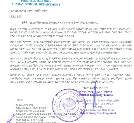 አዲስ አድማስ ጋዜጣ የአዲስ አበባ ሰንበት ት/ቤት ወጣቶች የፓትርያሪኩን እገዳ ተቃወሙ በሚል ርዕስ ቅዳሜ የካቲት 14/2007 ዓ.ም በቅጽ 14 ቁጥር 788 በጋዜጣው ፊት ለፊት ላይ አሳትሞ የቤተክርስቲያኒቱን ስም ማጥፋቱ አይዘነጋም፡፡ ይህንን ተከትሎም የአዲስ አበባ ሀገረ ስብከት ለሰንበት ትምህረት ቤቶች ማደራጃ በቁጥር 3092/546/07 በቀን፡- 19/06/07 ዓ.ም በፃፈው ደብዳቤ የካቲት 8 ቀን 2007 ዓ.ም ሀገረ ስብከቱ ከሰንበት […]
